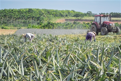 万宁农业部门与省农科院等科研机构合作,编印了菠萝、槟榔等作物的标准化栽培技术规程,为农户提供全程技术指导。万宁还采用“企业+合作社”模式,实行“统一肥料供应、统一种苗供应、统一技术指导、统一病害防治、统一订单收购”的标准化种植模式,促进菠萝产业提质增效。本报记者 袁琛 摄