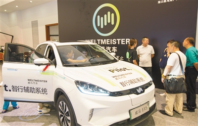 2019三亚科技博览会上,消费者在体验新能源汽车。