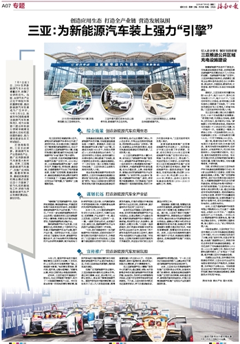 三亚市委、市政府高度重视清洁能源汽车推广应用工作,2016年以来,三亚围绕新能源汽车推广,在研发生产、购置补贴、使用运营、基础设施、交通管理等环节出台了相关配套政策,在推广应用规模、配套政策体系、基础设施建设和商业模式创新四个方面具备了一定基础,新能源汽车应用生态不断完善,为“绿牌车”上路铺就坦途。