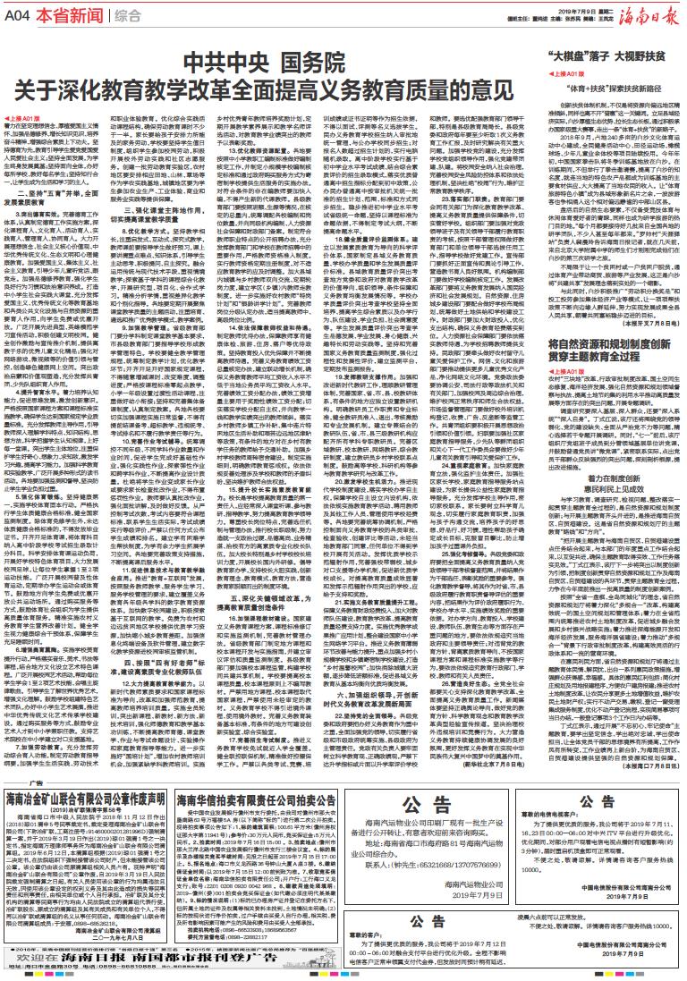 中共中央 国务院 关于深化教育教学改革全面提高义务教育质量的意见