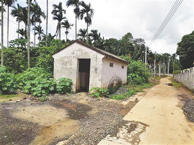 除了村民休闲广场上到处是垃圾之外,建在广场旁边的一座旅游厕所已经被旁边树枝掩盖。海南日报记者围绕广场走了两圈,硬是没有找到,最后在一村民的带领下才看见它。这个被弃置多年的厕所外立面已布满了黑色污渍,3个厕所门中,一个已经打不开了。打开另外两个门后,发现里面蹲位已经被翻转过来,完全不能使用。