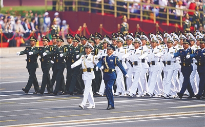 行进中的领导指挥方队。 新华社记者 周密 摄
