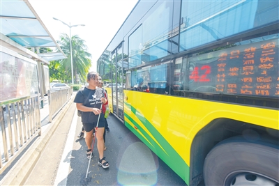吴海波搭乘公交车出行。