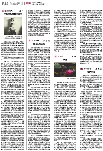 我们乘船渡江。我贪恋地环视着这一江一水,一草一木。上岸后,来到龙江当年的红军渡口,穿过龙江村,继续行军,最后到达塘北村——中共澄迈县委成立旧址,完成了一段重走红军路的路程。在中共澄迈县委成立旧址,王有华校长给我们讲解了澄迈革命的斗争史,讲到我们重走的这段红军路曾是澄迈党组织的重要运输线,在这条线路上,曾发生多次我党与敌人的生死争夺战。我仿佛看见枪林弹雨里爷爷奶奶带领红军战士冲锋陷阵。