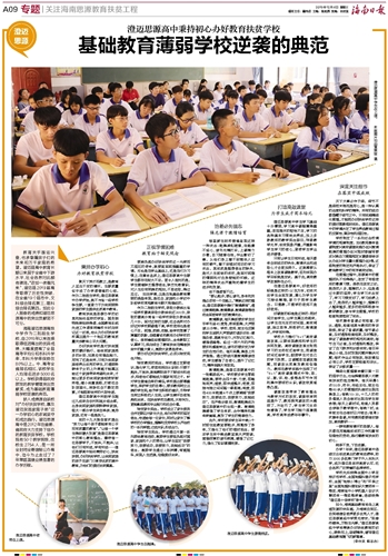党的十九大报告首次提出“努力让每个孩子都能享有公平而有质量的教育”。“让每一个学生得到最大发展”是澄迈思源高中的核心教育理念。善待每一位思源学子,不放弃,不抛弃,让他们日有所进,学有所成……澄迈思源高中始终秉持初心,扶贫扶弱,办好扶贫学校,让贫困家庭的孩子在家门口享受优质的高中教育,为他们的美好未来奠基。
