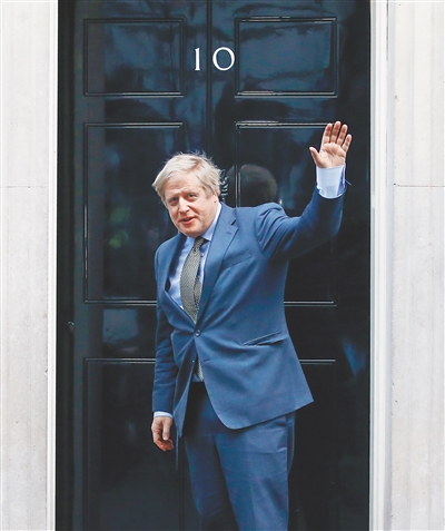 约翰逊从白金汉宫返回唐宁街10号首相府。新华社发