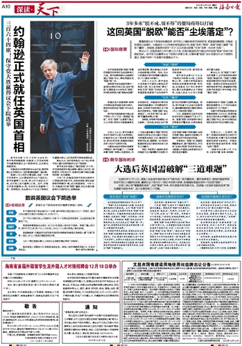 今年7月,约翰逊在保守党党内选举中以明显优势击败对手,当选党领袖,接任此前辞职的特雷莎·梅,成为英国首相。今年10月,约翰逊为打破“脱欧”僵局,向议会提交提前举行大选的动议,获得批准。