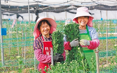 12月10日,在位于东方市马岭岛西林场西北侧的东方佳之卉农业有限公司菊花种植基地里,工人在采摘菊花。 据介绍,该基地的发展带动周边村庄的贫困群众就业,他们不仅有了稳定的工资收入,通过公司定期开展的培训活动,还学到了一门种植技术。