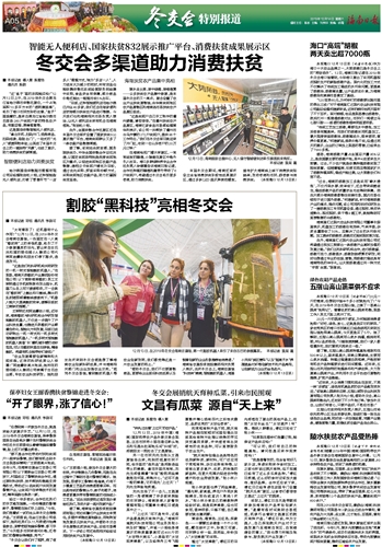 此外,全国供销合作社展区还在本届冬交会首次设置了国家扶贫832展示推广平台,海南贫困群众又多了一条农副产品销售渠道。