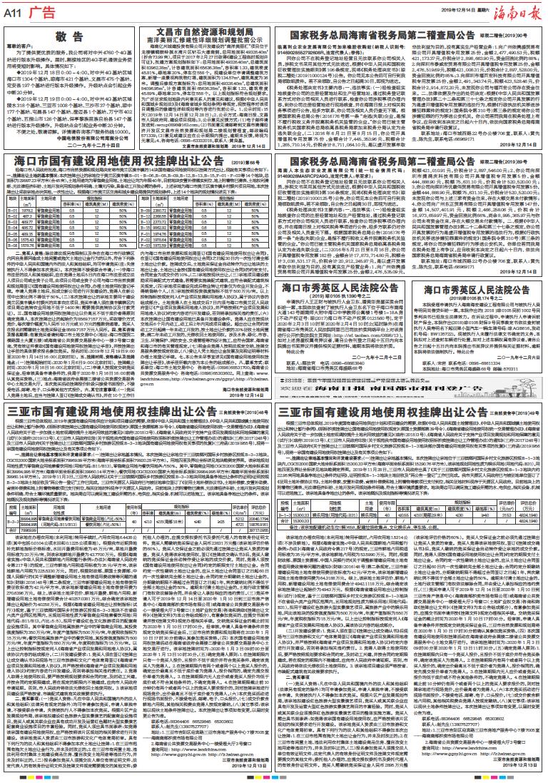 海口市国有建设用地使用权挂牌出让公告