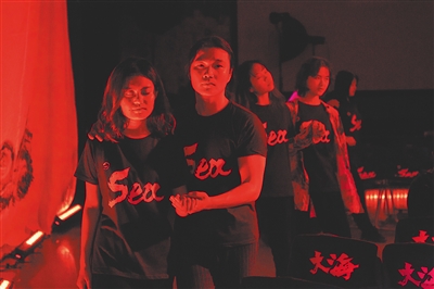在《大海》的演出过程中,演员会贴近观众,将情境中的问题抛向观众,一问一答间,就将观众“拉”进了话剧当中;演员可能会握住观众的手,互相凝视长达十秒,炽热的眼神中燃烧着对大海的向往;在临近尾声时,演员甚至邀请观众起身舞动,共同为大海唱一曲赞歌。“看传统戏剧时,我觉得是我在看这个世界,但在《大海》这个剧场当中,我认为是世界在看我。好像每个演员都在演我,好像我就是剧中每一个人。”看完首演后,海南大学人文传播学院大三学生张小婉擦了擦湿润的眼角,如是说。