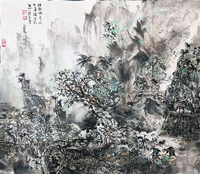 著名画家曾祥熙的画作《梦里家山又一春》也出现在此次展览上。曾祥熙是地地道道的海南人,1959年考入广州美院中国画系,学成归来后,在美术领域深耕不辍,2017年获得海南省南海文艺奖终身成就奖。