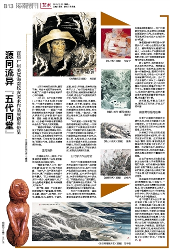 12月8日,由广州美术学院(以下简称广州美院)校友会指导,广州美术学院校友会海南分会、海南大学美术设计学院主办的“源同流异 ——首届广州美院海南校友美术作品展”在海南大学美术设计学院美术馆开幕。国画、油画、版画、雕塑、摄影,100多幅/件体裁丰富的精选作品吸引了许多人前来观展。