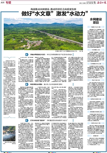 海南南渡江引水工程是国家172项节水供水重大水利工程之一。工程以南渡江干流为水源,由东山取水首部枢纽、水源提水泵站、分水泵站、灌溉泵站、输配水工程、五源河综合整治工程以及水库连通工程等组成。工程建设任务以城镇生活工业供水和农业灌溉为主,兼顾改善五源河防洪排涝条件等综合利用。工程总投资为36.2亿元。