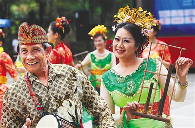 兴隆华侨在表演东南亚风情舞蹈。 海南日报记者 宋国强 摄