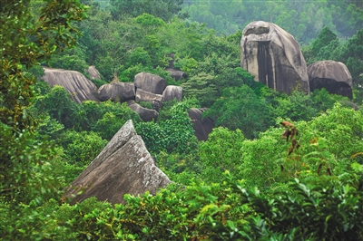 沿着“云路初阶”拾级而上,绿树成荫,曲径通幽,微风轻拂,倍感凉爽。“海南第一山”的奇观一绝——奇石,便陆续出现在眼前。