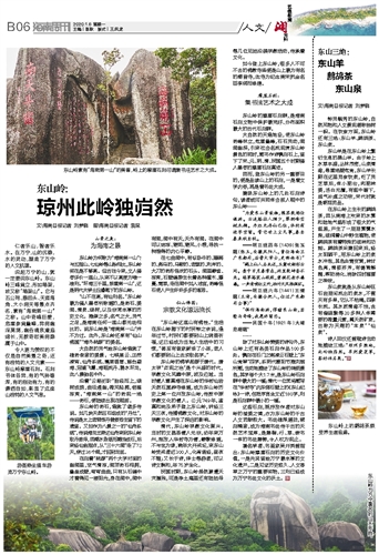 东山岭的摩崖石刻群,是海南石刻文物中保护最完好、分布面积最大的古代石刻群。