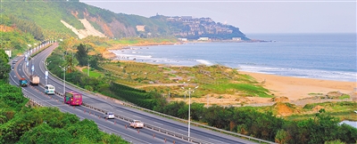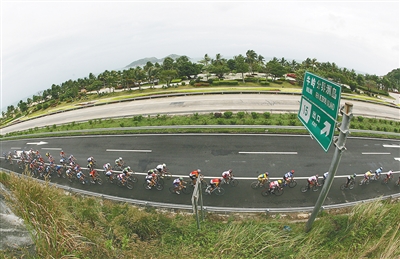 2007年,环海南岛国际公路自行车赛选手经过海南东线高速公路牛岭路段。 海南日报记者 宋国强 摄