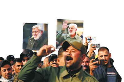 一月四日,数千哀悼者为被炸身亡的苏莱曼尼和穆汉迪斯送葬。 新华社发