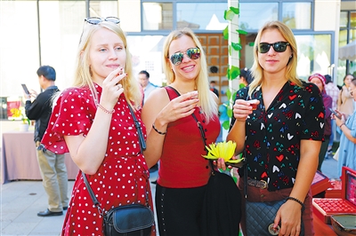 1月11日,五指山早春茶开采节现场,外国游客在品尝五指山红茶。
