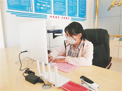 2月20日,梁雅在整理当天的新冠肺炎疫情防控工作日报。 本报记者 刘梦晓 摄