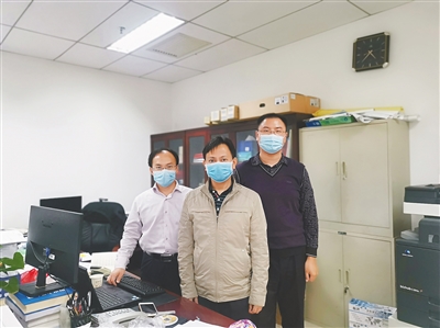 省政府办公厅秘书三处的颜洪南、陈永红、夏震(从左至右),组成了省新型冠状病毒肺炎疫情防控工作指挥部的“枢纽室”工作组。受访者供图