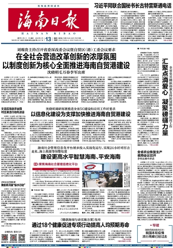 《方案》对标中国特色自由贸易港建设,围绕提高人均预期寿命主题,将通过健康知识普及行动、合理膳食行动、全民健身行动、控烟行动等18个健康促进专项行动,全方位干预健康影响因素,提升海南医疗与公共卫生服务的专业化、标准化、国际化水平。