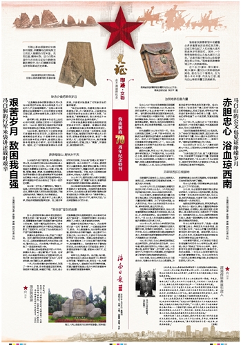 文\海南日报记者 林晓君 贾磊 特约记者 刘钊五指山革命根据地纪念园陈列馆里,收藏着冯白驹贴身卫士的后人捐赠的行军米袋。先烈已逝,精神长存。这个行军米袋作为历史的见证如今静静地躺在展柜中,向人们娓娓诉说着当年那段革命历史故事。