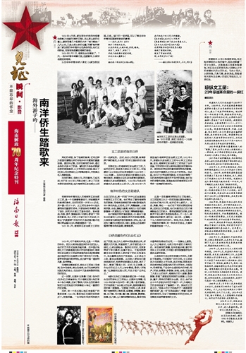 1949年10月1日中华人民共和国成立的当天,在琼纵司令部举行了盛大的军民联欢。不久,从全岛各地调来不少青年及回国华侨,壮大了文工团。1950年4月下旬,海口市解放,文工团随部队开进海口。他们在市内边演出、边发展队伍。