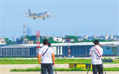 6月1日,在海口美兰国际机场二期跑道,一架“奖状560”校验飞机按既定计划开展飞行校验工作。 本报记者 张茂 摄