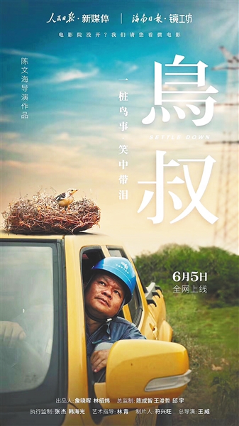 本报海口6月5日讯 (海报集团全媒体中心记者蔡曼良)6月5日是世界环境日,由人民日报新媒体和海南日报新媒体镜工坊联合出品的微电影《鸟叔》全网上线。该微电影在人民日报微信公众号头条首发后,阅读量迅速突破10万+。经海南日报微信公众号推送后,更是形成朋友圈刷屏之势。截至记者发稿时,该微电影在人民日报官方微博的浏览量已经突破400万次。不少网友为微电影体现的人与自然和谐共生的立意点赞。