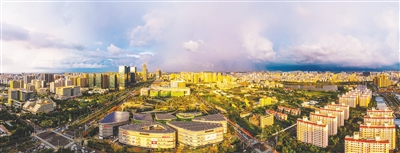 6月7日,航拍海口国兴大道及周边城市景观。 本报记者 张茂 摄