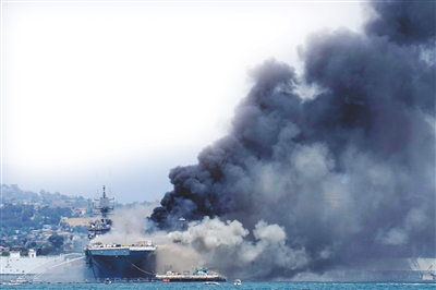 圣迭戈消防局报告称,当地时间8时30分左右,停泊在圣迭戈海军基地的“好人理查德”号两栖攻击舰发生爆炸伴随起火。