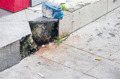 8月4日,在位于三亚市河西路与和平街交叉口的百佳汇超市门前,烟头、快递袋、槟榔渣等垃圾散落在地面上。 本报记者 武威 摄