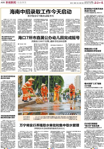 同时,今年海口区属城区公办幼儿园摇号将于8月18日至19日开展,报名的家长可持续关注。
