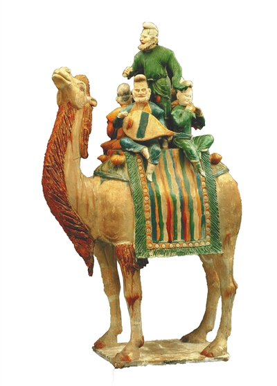 中国国家博物馆藏唐三彩骆驼载乐俑。