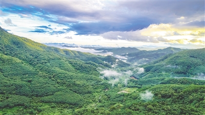 鹦哥岭绵延的山峦草木苍翠,唯美壮观。 本报记者 袁琛 摄