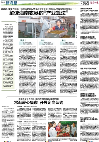 做减法,化繁为简统一标准;做加法,增业态补链强链;做乘法,释放发展乘数效应……海南农垦人在一道道“产业算法”中,围绕“八八战略”,打造一批优势产业和名优品牌,谋求民生福祉,带动职工、群众增收致富,为海南自贸港建设不断贡献海垦力量。