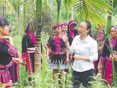 省农林科技学校副校长陈晓明在槟榔基地给学生授课。 (图片由省农林科技学校提供)