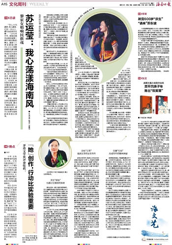 近日,海南日报记者独家专访苏运莹,通过了解她在音乐上的成长经历,感受她丰富多彩的内心世界与独特极致的音乐思考。