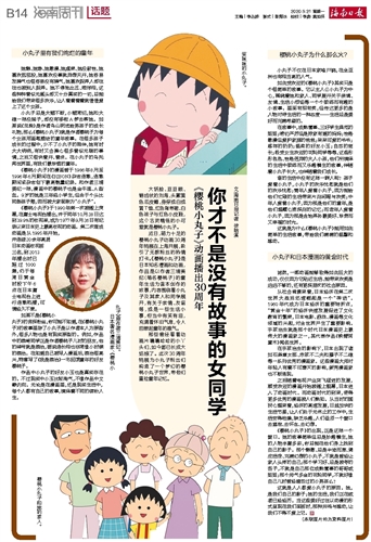 文\海南日报记者 徐晗溪大饼脸、豆豆眼、锯齿状的刘海,头戴黄色瓜皮帽,身穿或白或黄T恤、红色背带裙、白色袜子与红色小皮鞋,这个古灵精怪的小可爱就是樱桃小丸子。