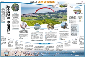 三亚南山文化旅游区→三亚国际免税城→陵水分界洲岛→万宁东山岭→万宁兴隆小镇→琼海官塘泡温泉→琼海北仍村特色民宿→海口观澜湖旅游度假区→海口长影环球100奇幻乐园→雷琼海口火山群世界地质公园