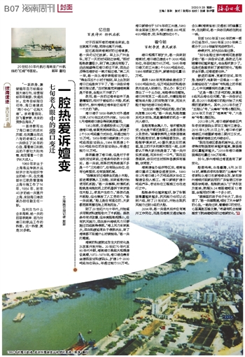 一首诗歌写出了海口港口的成长历程,也流露出年近八旬的老港口人杨一兵倾注了36年的心血,看着港口和航运的不断壮大和完善,宛若看着一个孩子长大成人。