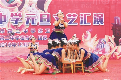 海口市第二中学学生排练舞蹈节目和参加文艺汇演。 本栏图片除署名外均由受访者提供