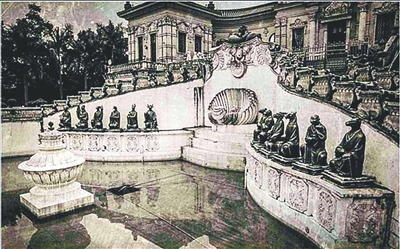 圆明园海晏堂及其十二兽首。