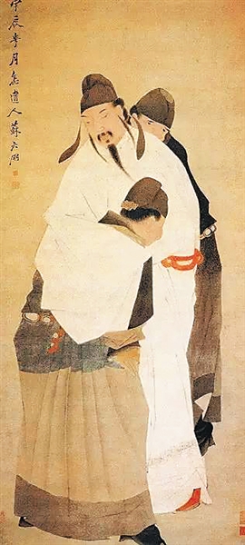 李白的风神,我们可以通过他的诗歌领略,那么,他的样貌到底如何。首先我们看看他自己的说法。李白有一篇很有名的干谒信,就是写给当时的名流韩朝宗的那封《与韩荆州书》。其中说到自己“虽长不满七尺,而心雄万夫。”不需要详细考校隋唐时期的“七尺”是今天的几尺几寸,只需要知道“七尺男儿”是古人常见的说法,就可知在当时是平均的身高,而李白“不满七尺”,而且他的句式也是一个转折句,可知他的个子偏矮,却心雄天下。精气神十足。辛文房《唐才子传·李白传》的写法可为佐证:侍御史崔宗之谪官金陵,与白诗酒唱和。尝月夜乘舟,自采石达金陵。白衣宫锦袍,于舟中顾瞻笑傲,旁若无人。初,贺知章见白,赏之曰“此天上谪仙人也。”就是巧妙剪裁,把贺知章的说法,变成天下人的共识。辛文房如此写法,有深厚的舆论基础。我们只要想想有关李白出生、辞世的传说,他出生时,他的母亲梦见长庚星入怀,所以他名白,字太白。他的死,在传说中也不是如我们凡夫俗子一样平庸地老死床上,而是醉酒捉月,骑鲸仙去。李白自己也曾经有一首题目长长的诗写到这件事“忽忆绣衣人,乘船往石头。草裹乌纱巾,倒披紫绮裘。两岸拍手笑,疑是王子猷。”这是融合了王子猷雪夜访戴,和王恭披鹤氅,望之如神仙的典故。李白显然很享受大家对自己的围观。