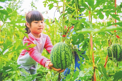 图为市民游客在儋州市那大镇合罗农场西瓜基地体验采摘乐趣。通讯员 羊文彪 摄