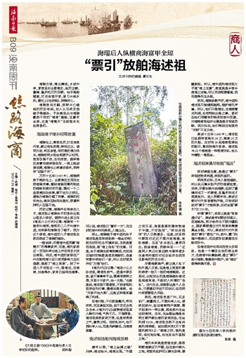 海瑞身后乏嗣,按照兴亡继绝的历史传统,后人从兄弟支选继子得继孙。子孙竟走出与海瑞截然不同的“海商”道路,且富甲全琼,这是“海青天”生前根本无法想象的。