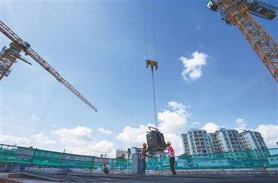 近日,三亚中交国际自贸中心项目正在加紧施工。