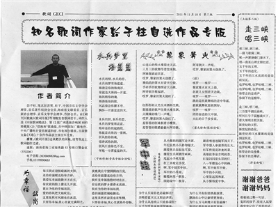 《天津歌词月报》专版发表彭子柱歌词作品。